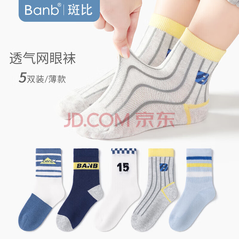斑比儿童袜子男孩夏季网眼薄款春秋大童中筒棉袜BB23015 20-22码