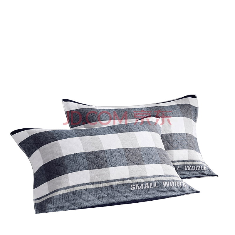 艾薇纯棉枕巾一个加大加厚学生儿童枕巾夹棉枕头巾 灰色格子 50*80cm