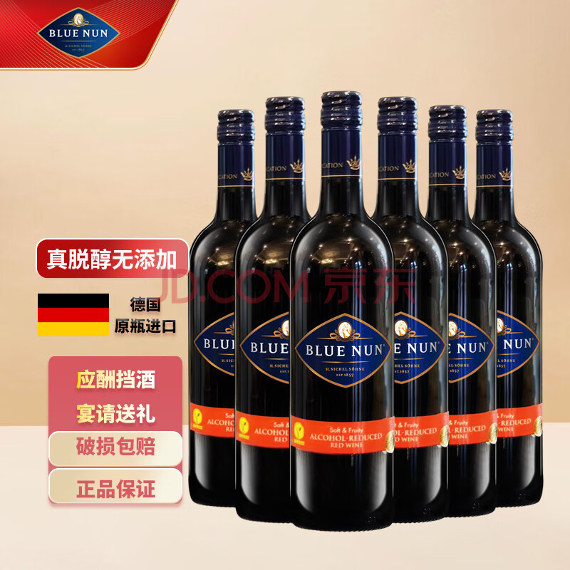 蓝仙姑脱醇红葡萄酒我素我行德国进口无醇红酒整箱6瓶年货送礼热门