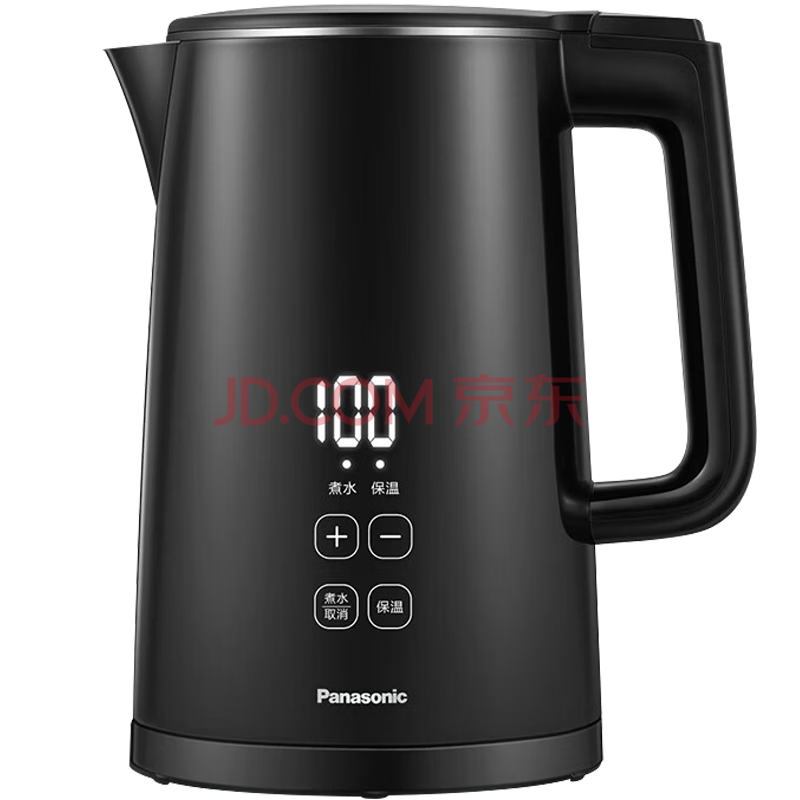 松下(Panasonic)电热水壶 黑色 1.5升 实时显温 多段温控 304不锈钢内胆 保温烧水壶NC-TD151