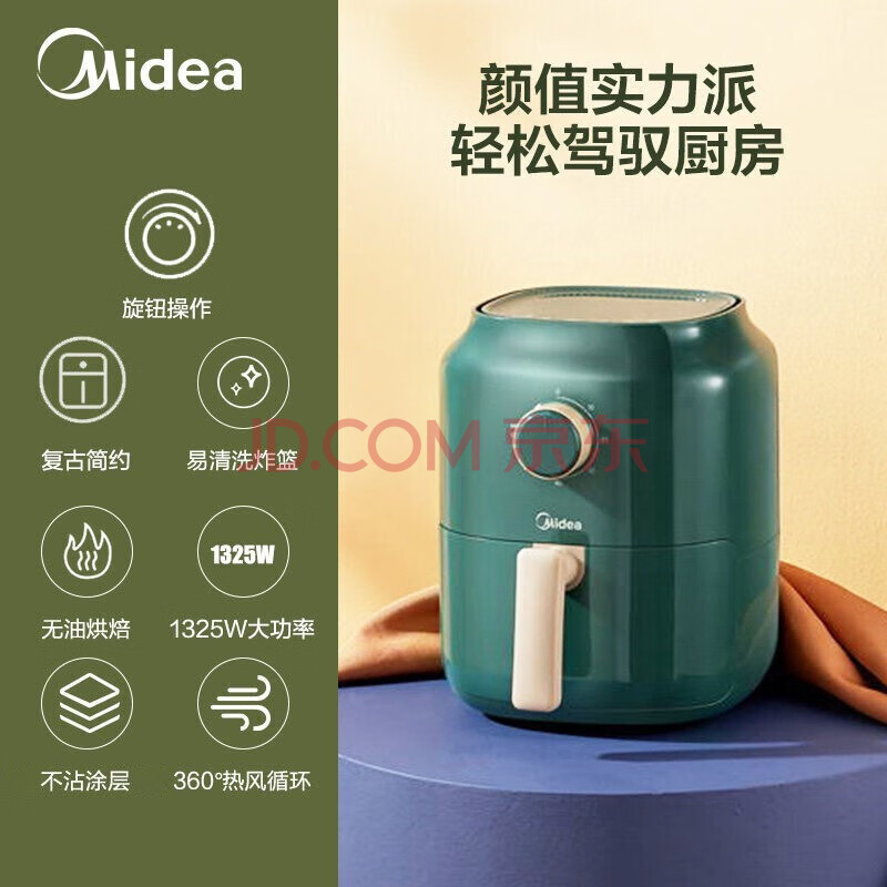 美的 美的 低油空气炸锅家用智能多功能电气炸锅大容量薯条机分体式设计 森墨绿KZ30E201 商用