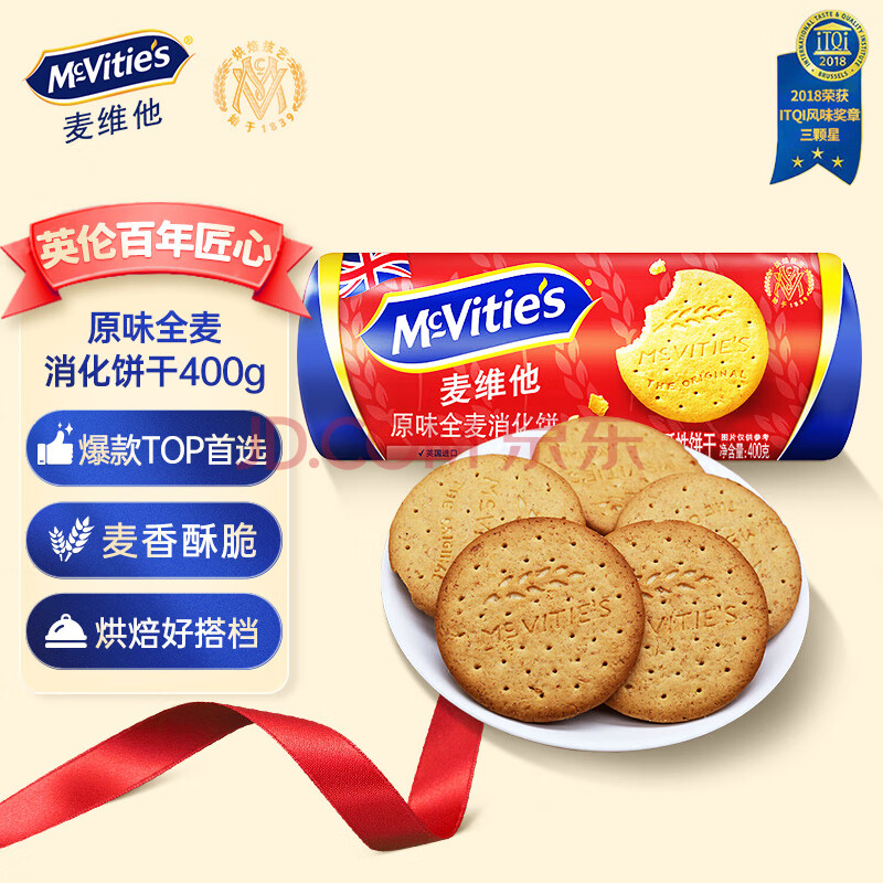 McVitie's麦维他原味全麦粗粮消化饼干400g 进口早餐 中老年人孕妇休闲零食