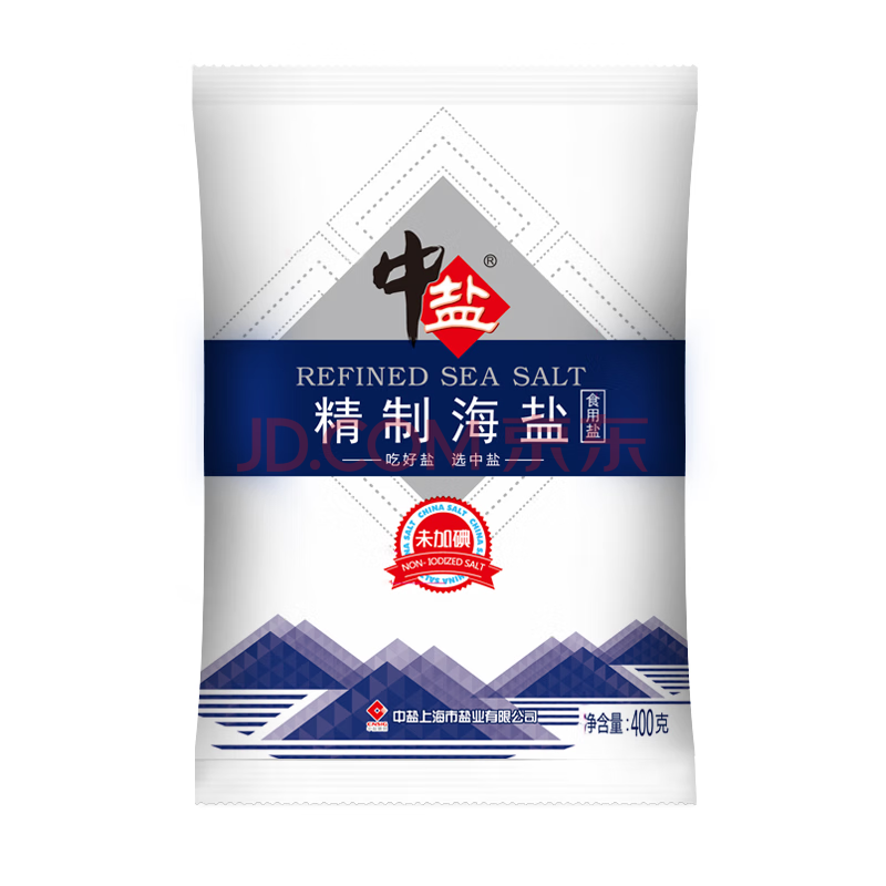 中盐 精制海盐400g【未加碘】炒菜调料食用海盐 无碘海盐 中盐出品