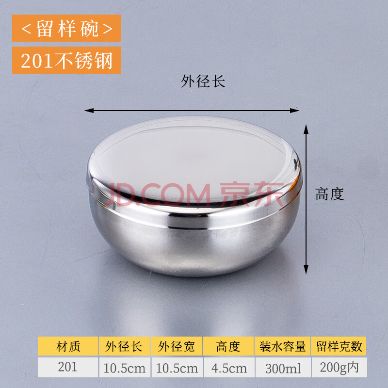 胜佳 留样罐调料盒不锈钢食物留样盒 盖碗10.5cm (201)