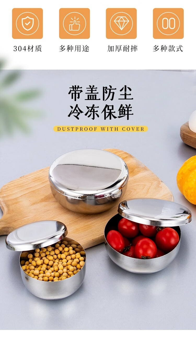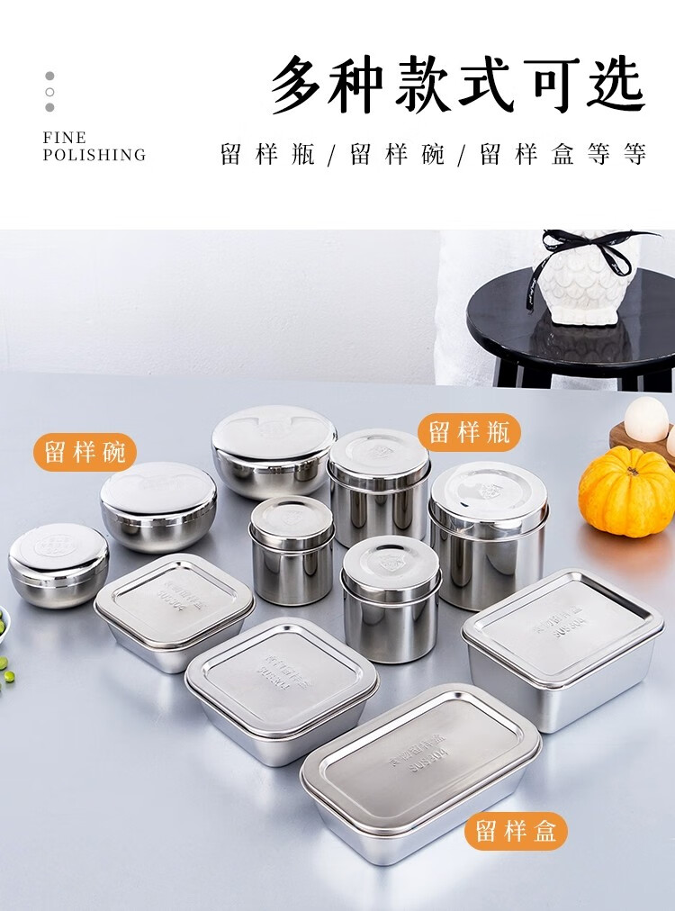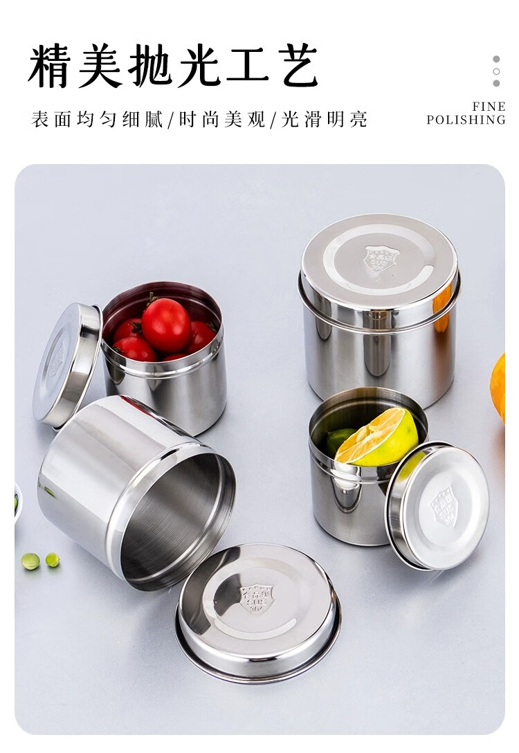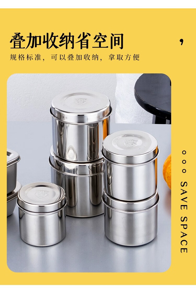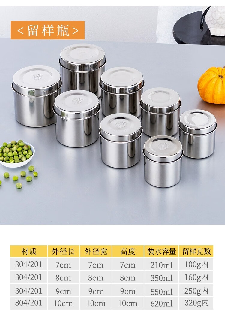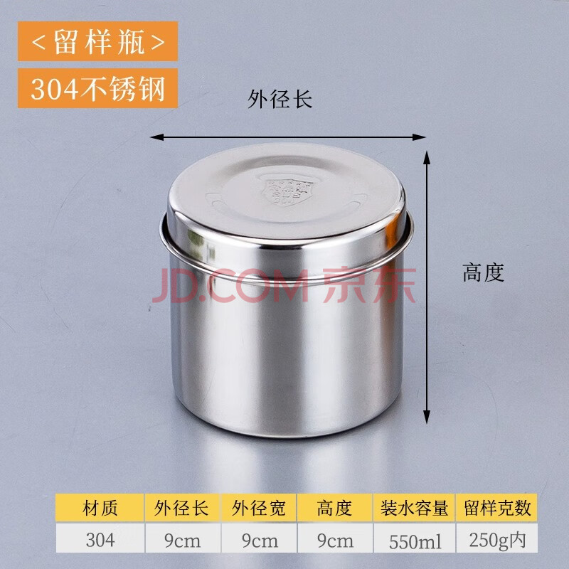 胜佳 食品留样罐调料盒不锈钢食物留样盒 纯正304圆形9cm