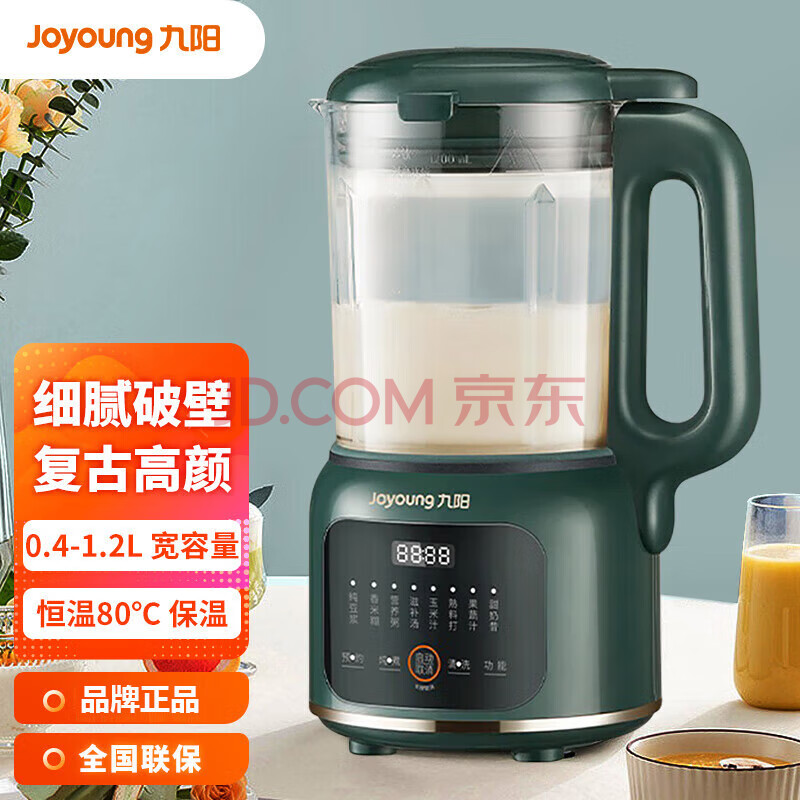 九阳(Joyoung)家用多功能豆浆机破壁免滤1.2L大容量搅拌机料理机可视豆浆机 DJ12X-D139 墨绿色
