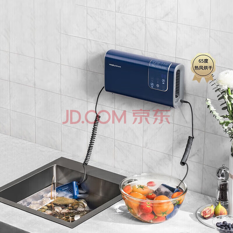 摩飞电器 摩飞果蔬清洗机 家用双仓有线洗菜机 蔬菜水果分类去农残净化机 烘干消毒神器 MR2061蓝