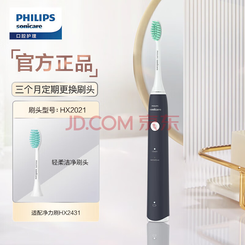 PHILIPS飞利浦 电动牙刷 成人牙刷 入门款 2种模式 洁齿护龈 净力刷 HX2431/06 深蓝色