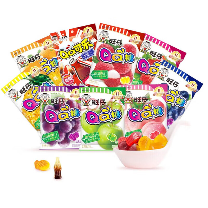 旺旺 休闲怀旧零食旺仔QQ糖 口味随机橡皮糖果70g/袋 30袋起售