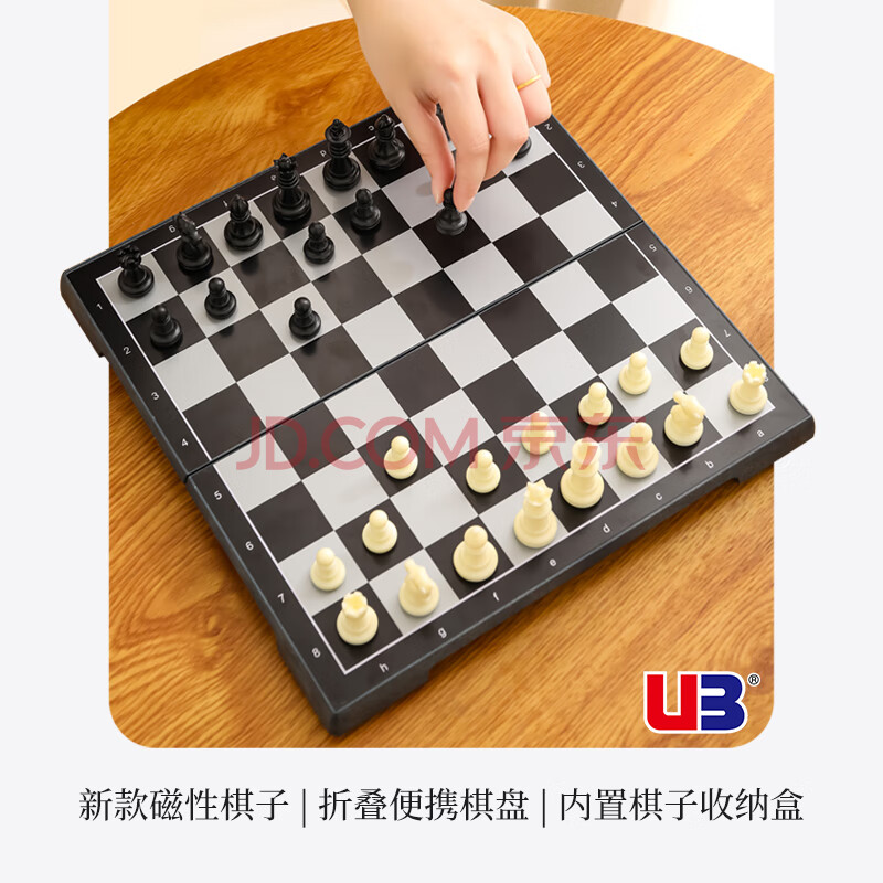 友邦国际象棋黑白磁性折叠便携成人儿童学生教学用棋2810B(棋盘28*28)