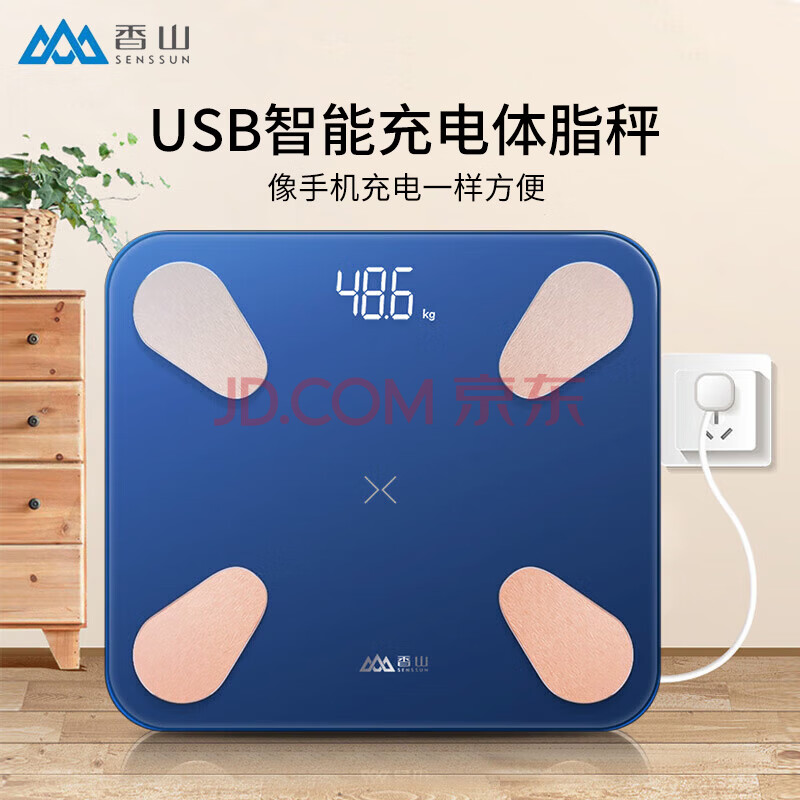 香山 体脂称 智能体重秤 双频测脂更专业 家用防撞防摔电子秤减肥 APP数据监测 F2R 湛蓝【充电款】