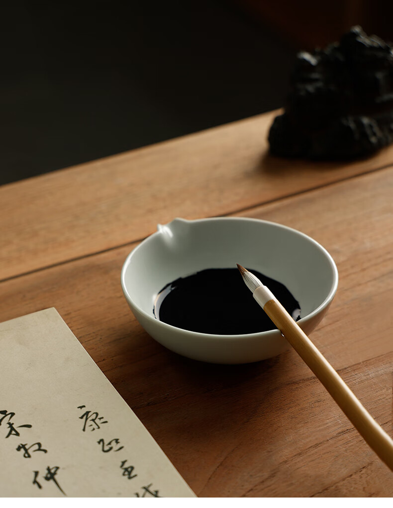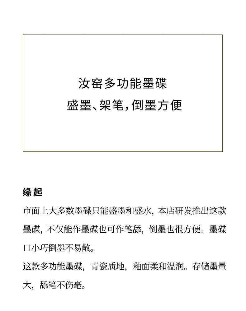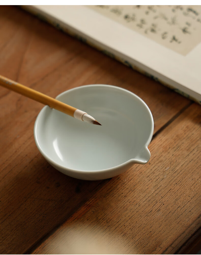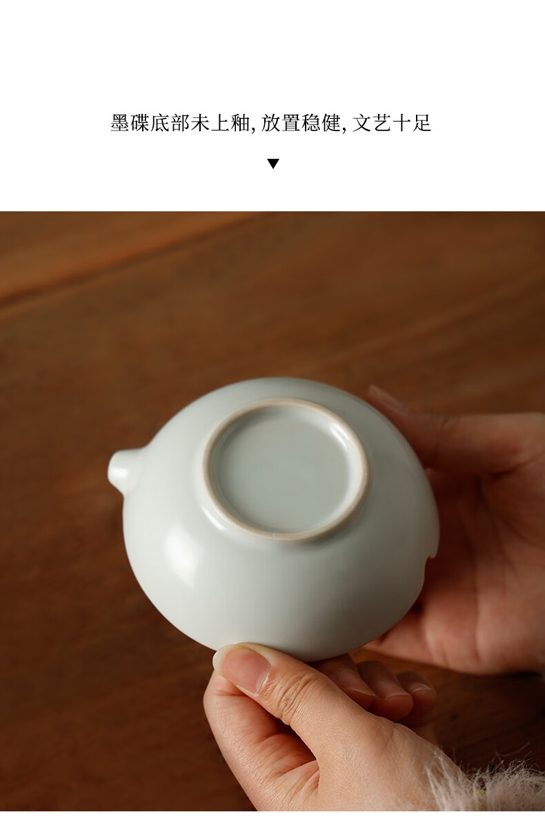 漢墨汝窑仿古陶瓷墨碟 墨池笔掭小清新多功能储墨汁毛笔笔架 文房四宝书法国画用瓷器摆件