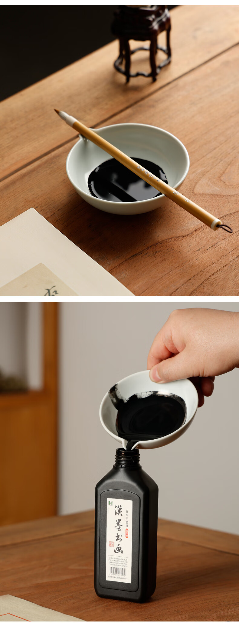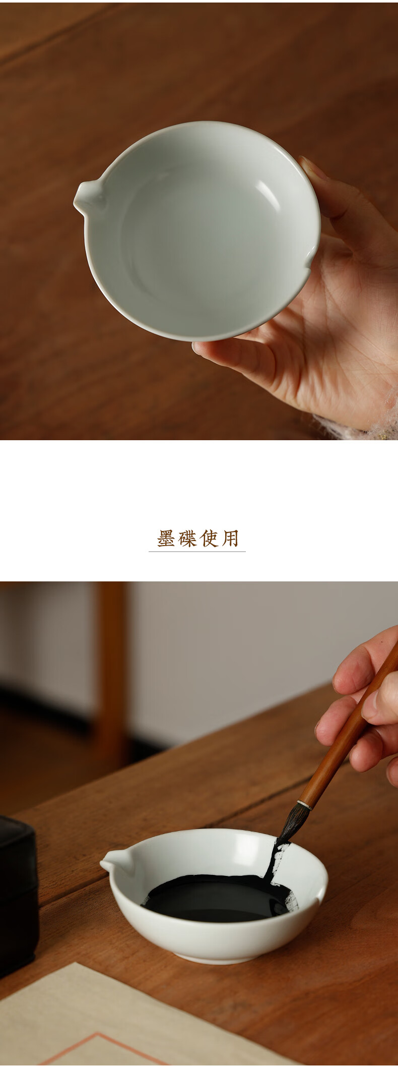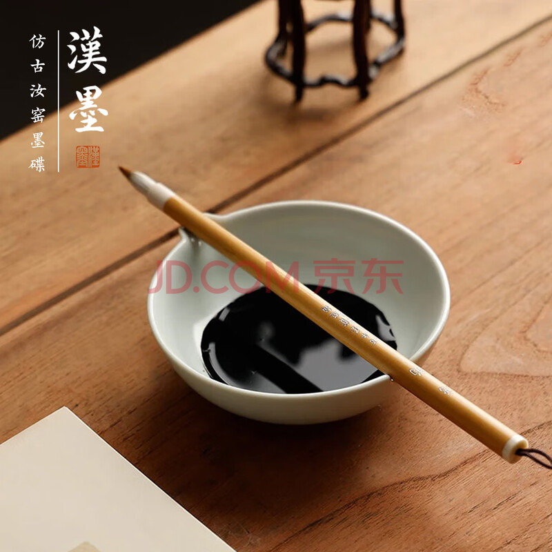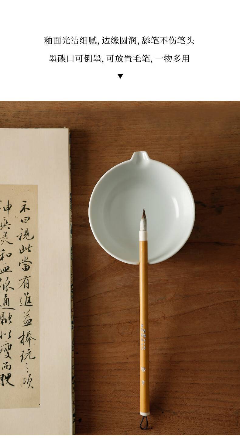 漢墨汝窑仿古陶瓷墨碟 墨池笔掭小清新多功能储墨汁毛笔笔架 文房四宝书法国画用瓷器摆件