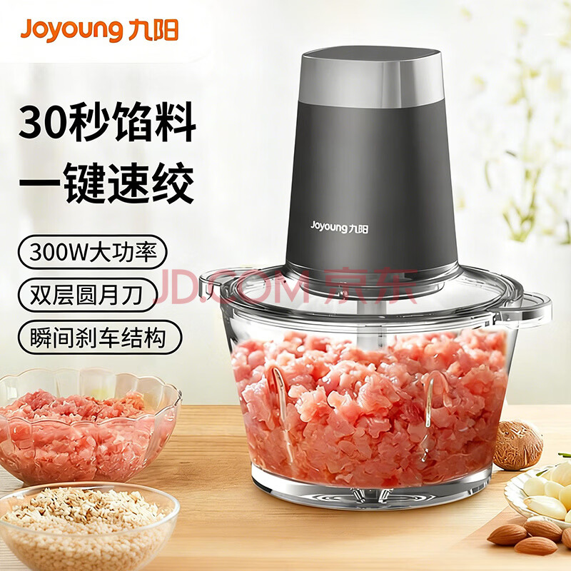 九阳(Joyoung) 绞肉机 一键速绞 加厚玻璃碗 1.8L大容量 多功能辅食料理机 家用绞馅捣蒜搅拌器 S18-LA189