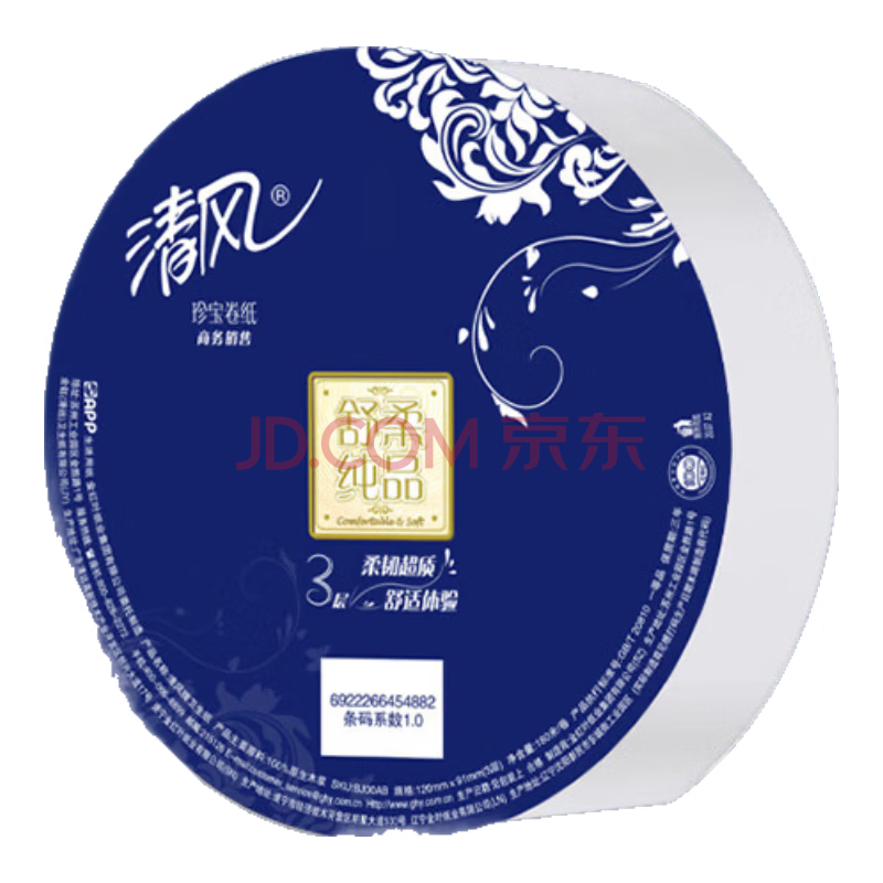 清风有芯卷纸舒柔纯品3层180米*12卷平纹珍宝大卷纸