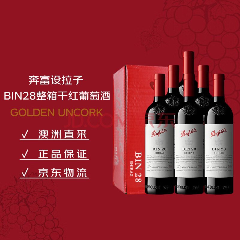 奔富(Penfolds)BIN28西拉/设拉子干红葡萄酒750ml*6支原瓶进口木塞原箱【澳版】