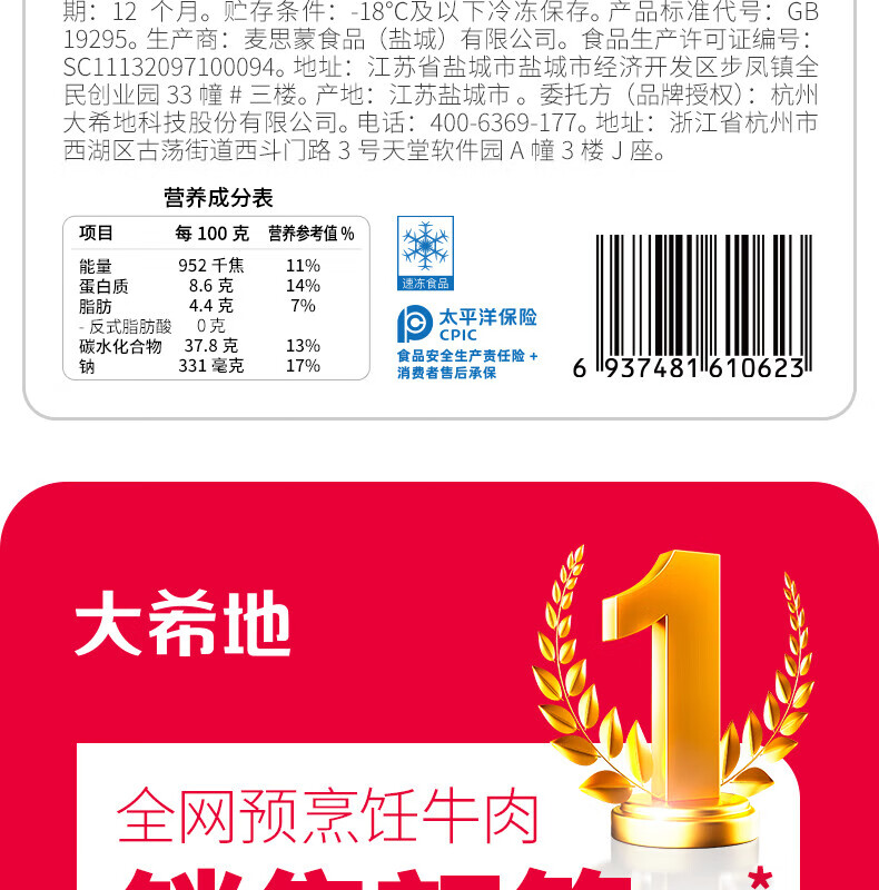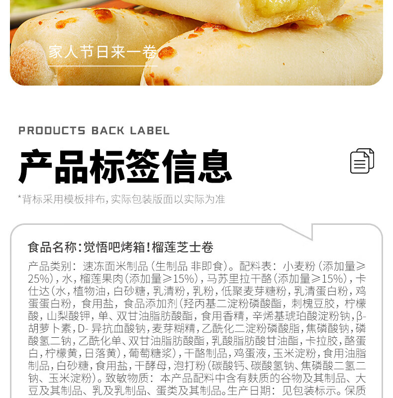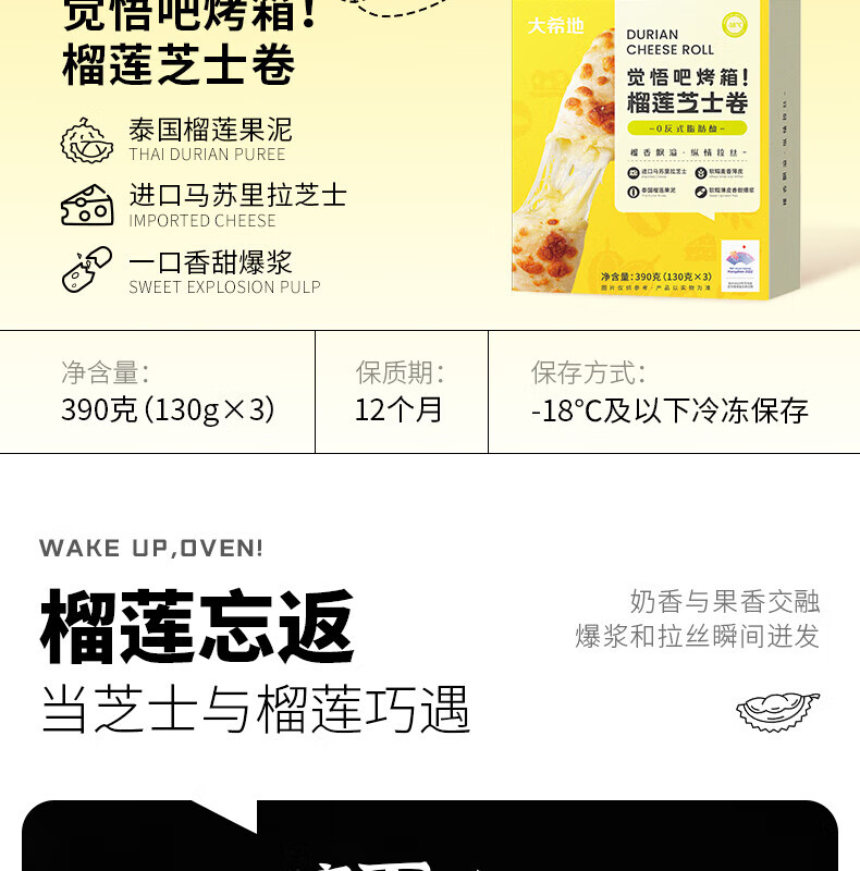 大希地美丽麻利烘丨榴莲芝士卷130g*5盒