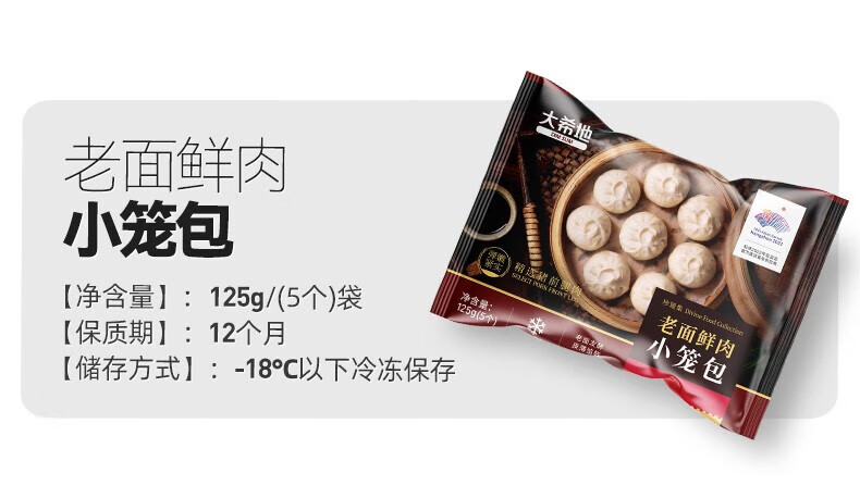 大希地老面鲜肉小笼包生鲜半成品早餐食品 老面鲜肉小笼包125g *12袋