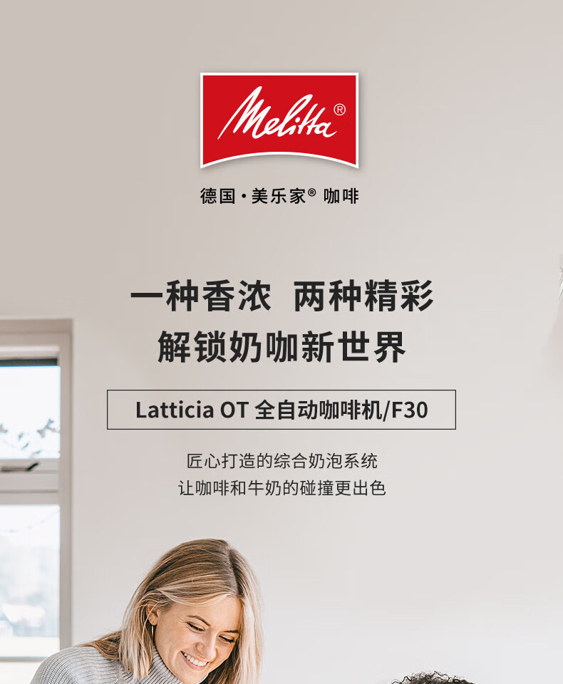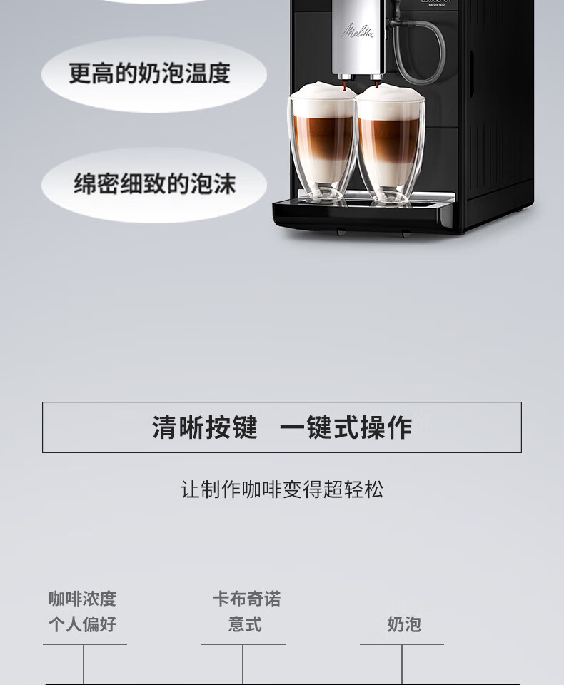 MELITTA全自动咖啡机 家用办公室用 欧洲原装进口德国意式浓缩一键奶泡现磨商用咖啡机 Latticaia OT F30神秘黑