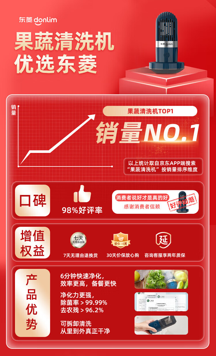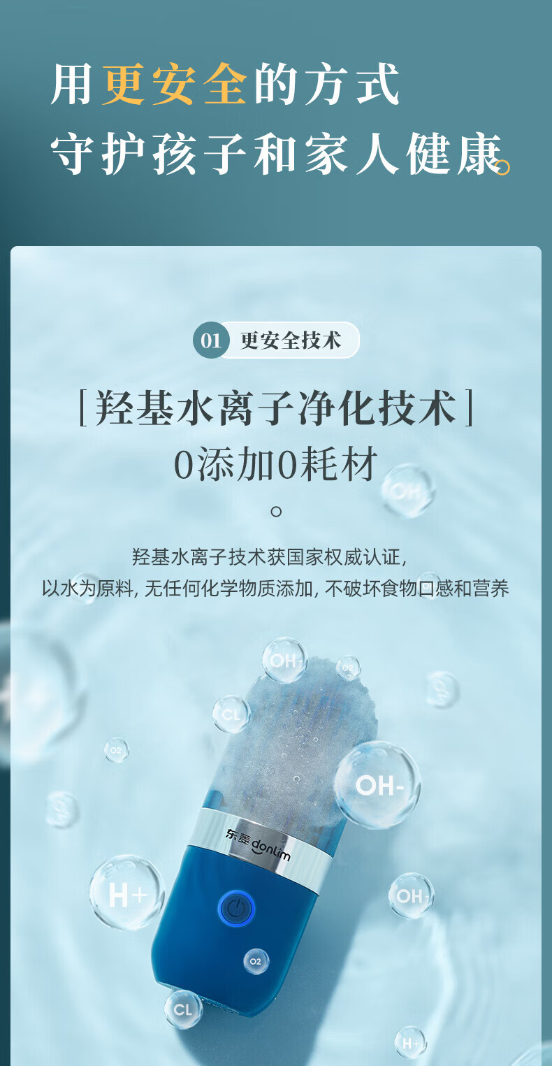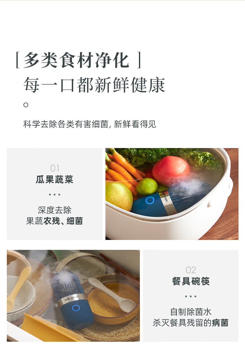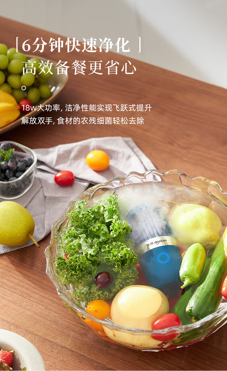 东菱(Donlim)果蔬净化器 果蔬清洗机 家用洗菜机 蔬菜水果食材净化机器 去农残清洗机 无线便携 DL-001