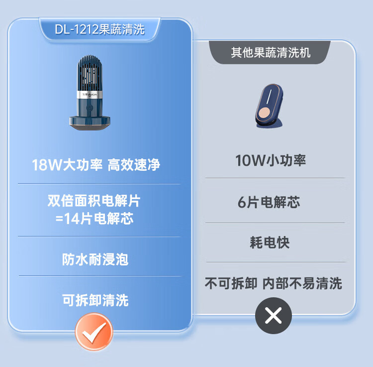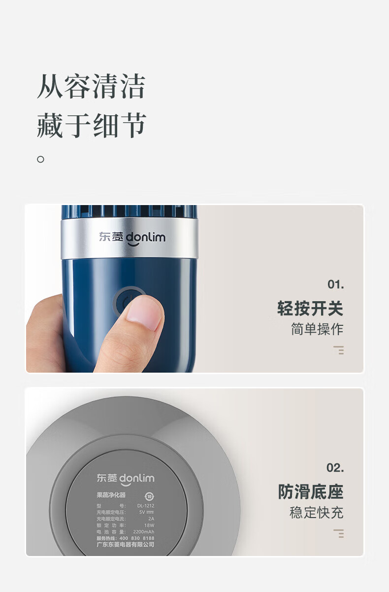 东菱(Donlim)胶囊果蔬清洗机升级款家用洗菜机蔬菜水果食材净化机器去农残消毒神器 无线便携 DL-1212