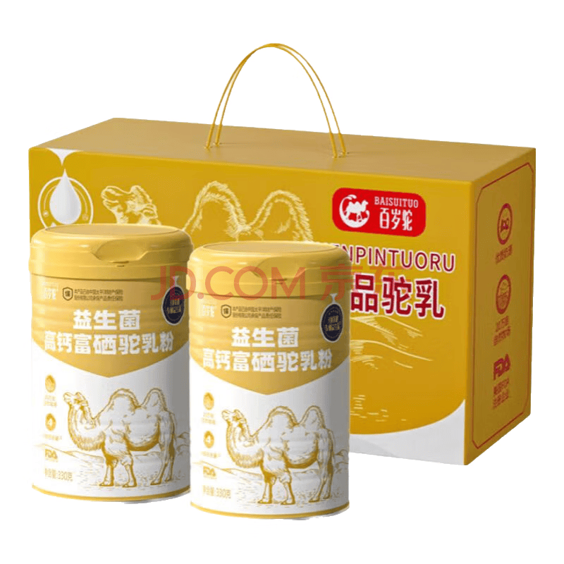 百岁驼高钙富硒正宗骆驼奶粉中老年人无蔗糖送爸妈过年货330g*2罐礼盒装
