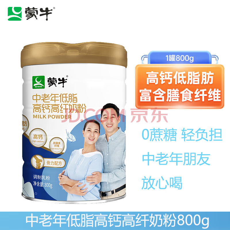蒙牛 中老年低脂高钙高纤奶粉800g罐装 营养早餐老人冲饮奶粉