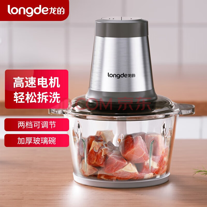 龙的(longde) LD-KM206 绞肉机 家用绞馅剁馅机 绞肉绞菜辅食机饺子肉馅蒜蓉机电动搅拌两档调节高速电机玻璃碗