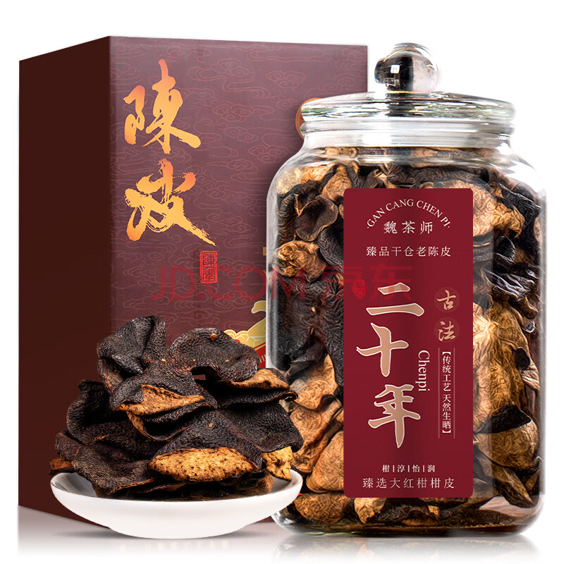 魏茶师茶叶广东正宗精选20年老陈皮柑普玻璃罐装可泡白茶普洱礼盒装250g