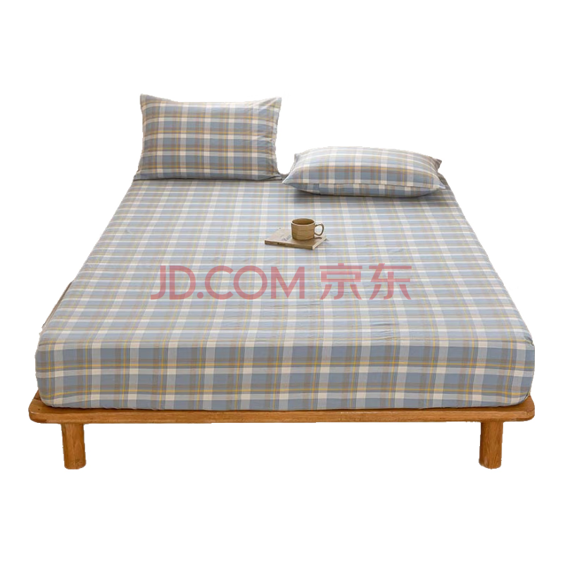 无印良品A类可水洗100%纯棉床笠单件学生宿舍防滑防脏床单兰格 0.9x2米床
