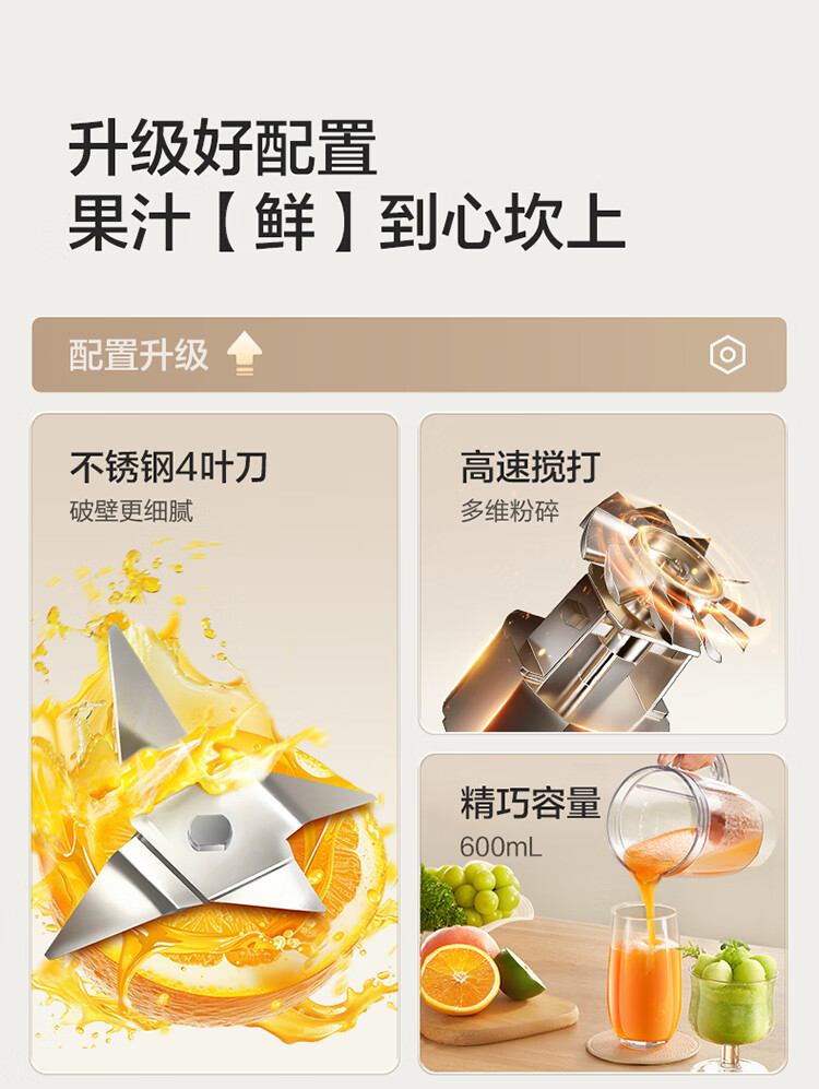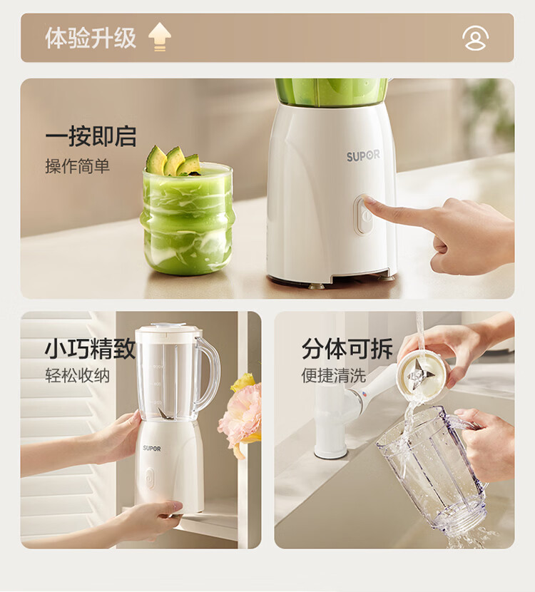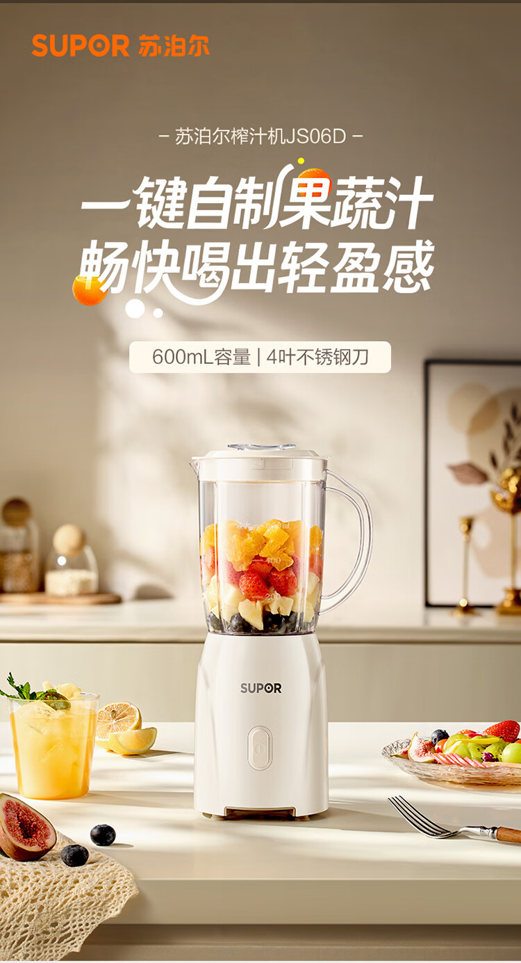 苏泊尔(SUPOR)榨汁机原汁机家用榨汁杯果汁杯多功能小型果蔬压榨搅拌机可拆洗料理机果汁机JS06D