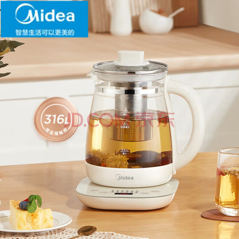 美的(Midea)养生壶316L不锈钢玻璃面板烧水壶热水壶1.5L大容量煮茶壶 YSNC1501Pro
