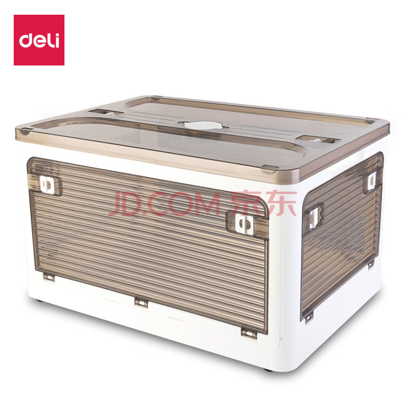 得力得力 可折叠书籍桌面收纳箱透明书箱书本大号整理箱 储物箱带滑轮 白色PG101