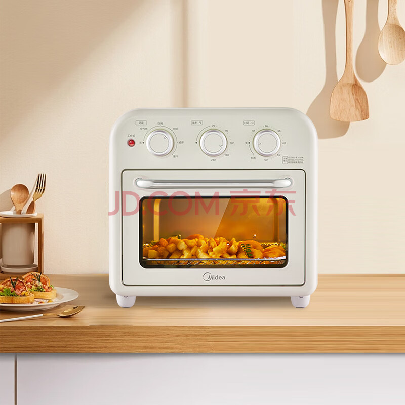 美的(Midea)家用多功能空气炸锅电烤箱一体机 高效脱脂/可视化/循环热风免翻面 15L浅杏色PT1510【团购专属】