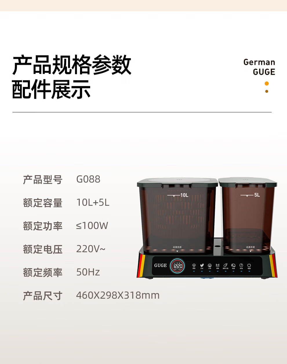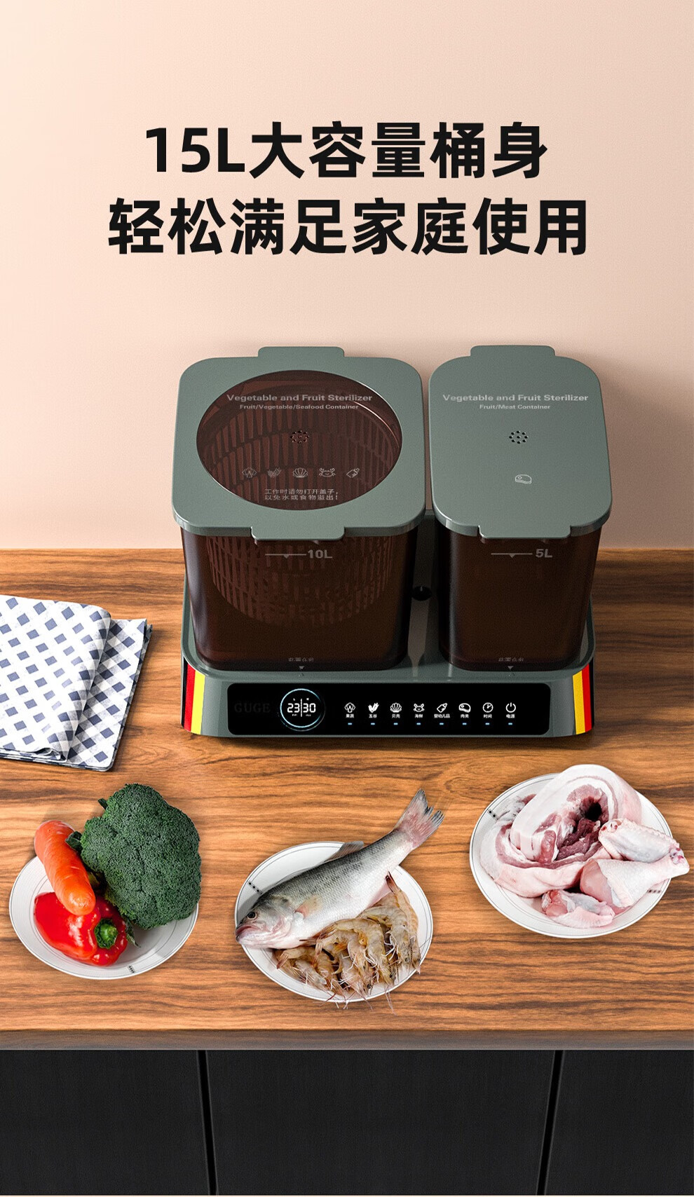 谷格(GUGE)食材净化机家用洗菜机等离子旋转果蔬清洗机 德国谷格G088大容量双桶