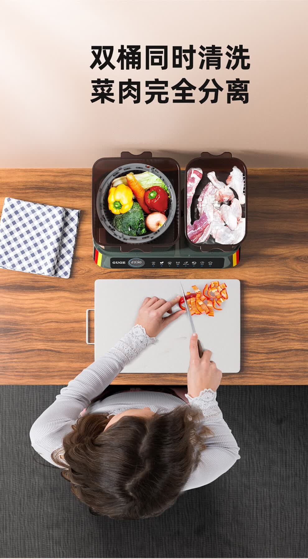 谷格(GUGE)双桶独控旋转净化肉菜分洗全自动消毒食材净化器G088普T