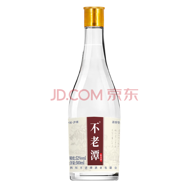 不老潭52度粮食白酒清香型高度白酒瓶装高粱酒自饮口粮酒 500ml