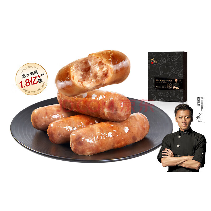 锋味派火山石烤肠纯肉肠台湾即食脆皮香肠400g 原味黑猪肉【单盒】