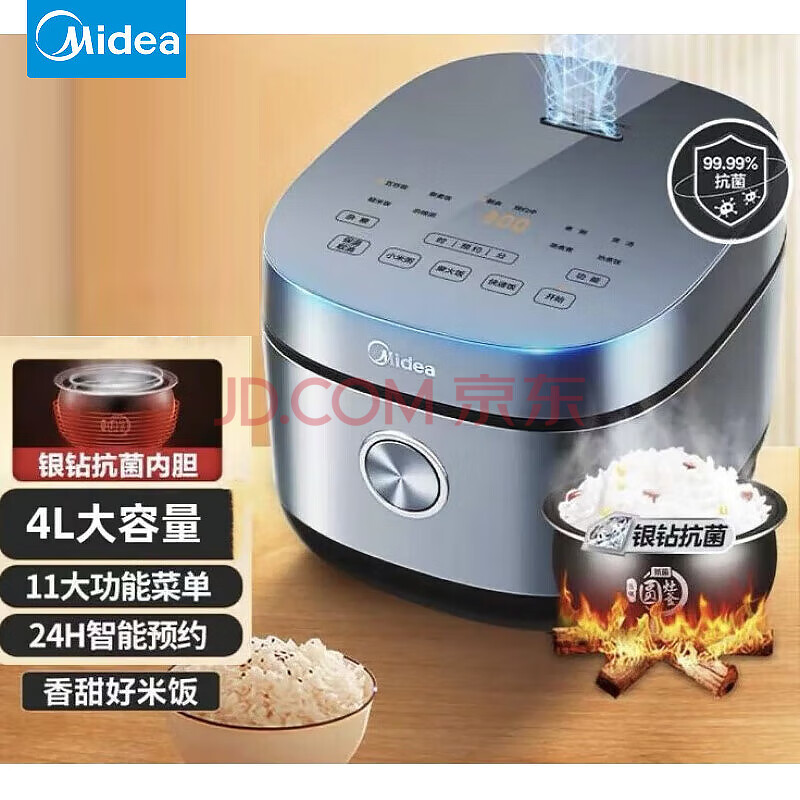 美的(Midea)电饭煲电饭锅4L银钻内胆11大菜单家用智能电饭煲大火力家用智能电饭煲MB-RE473(3-8人)