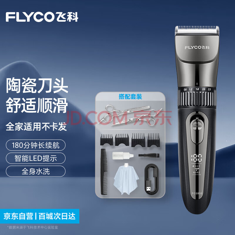 飞科(FLYCO)电动理发器FC5908 专业智能电推剪成人儿童家用理发剪刀 配理发工具全套+双钢剪