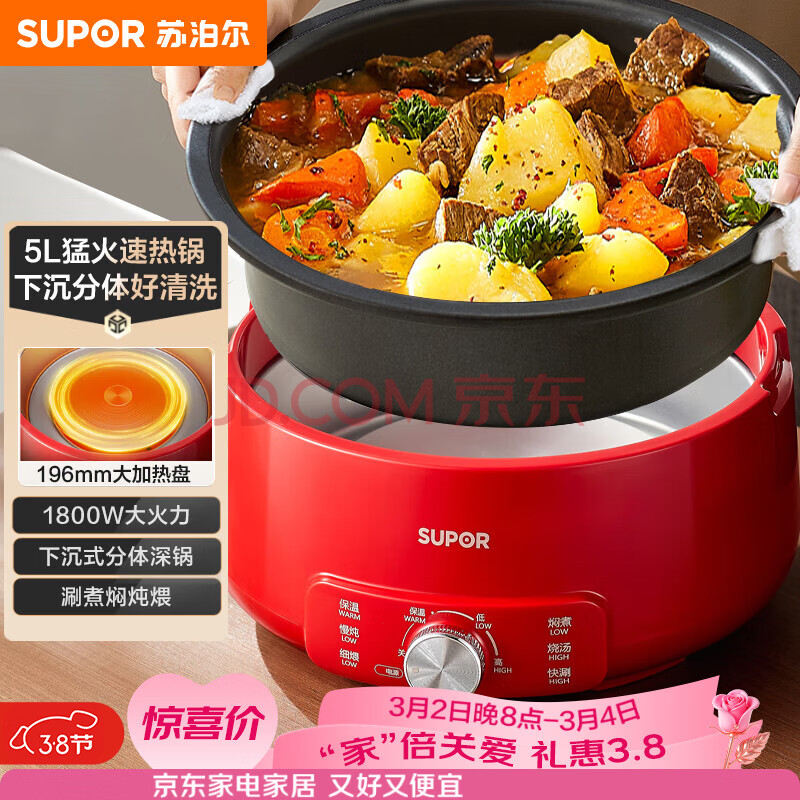 苏泊尔(SUPOR)电火锅 分体式电煮锅 火锅专用锅 家用多功能电热锅 5L多用途涮肉锅 H50YK787