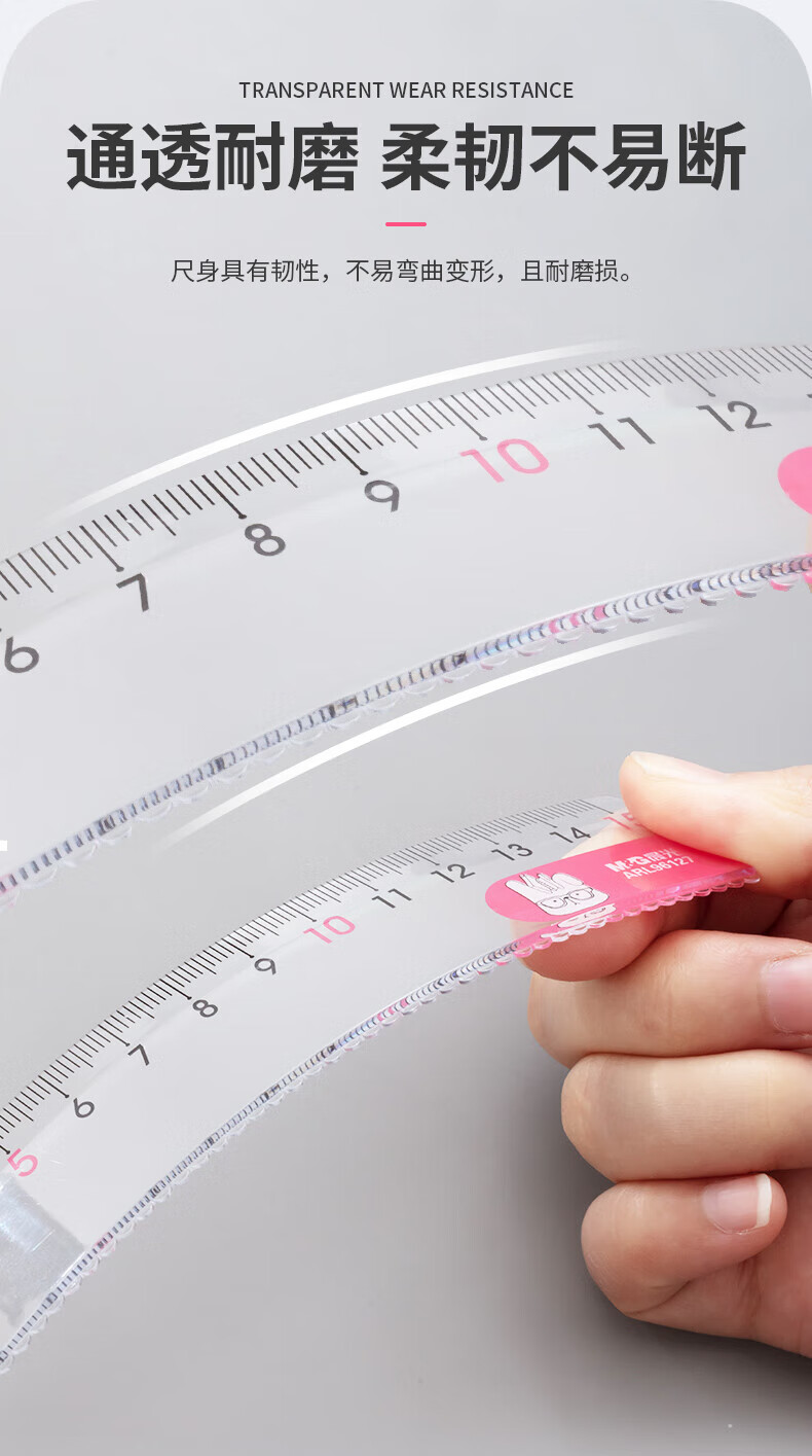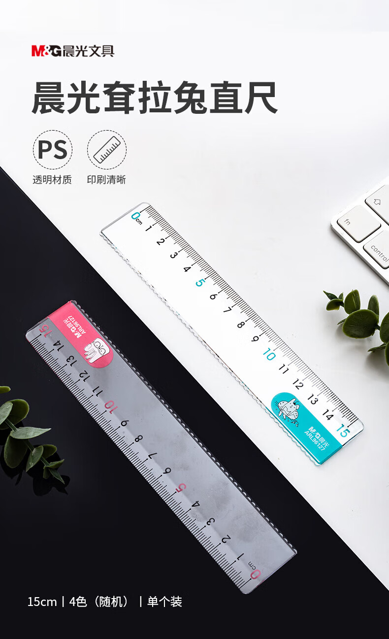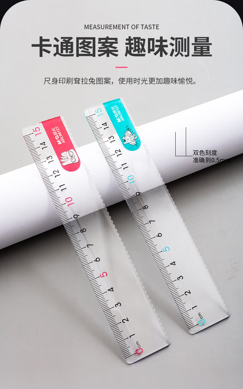 晨光(M&G)文具15cm学生直尺 考试绘图制图波浪边尺子 耷拉兔系列 开学文具 颜色随机单个装ARL96127开学礼物