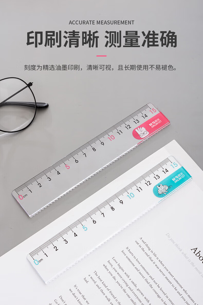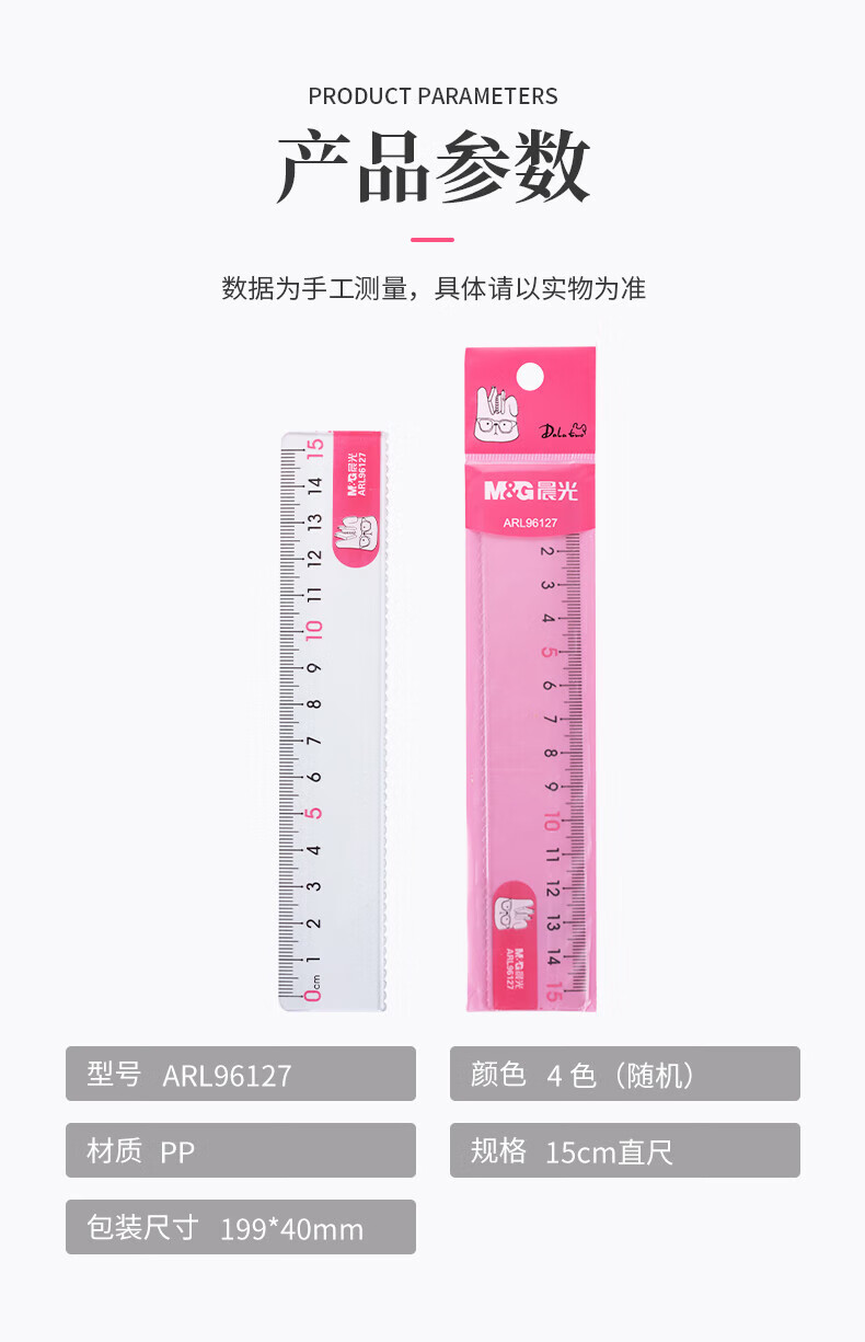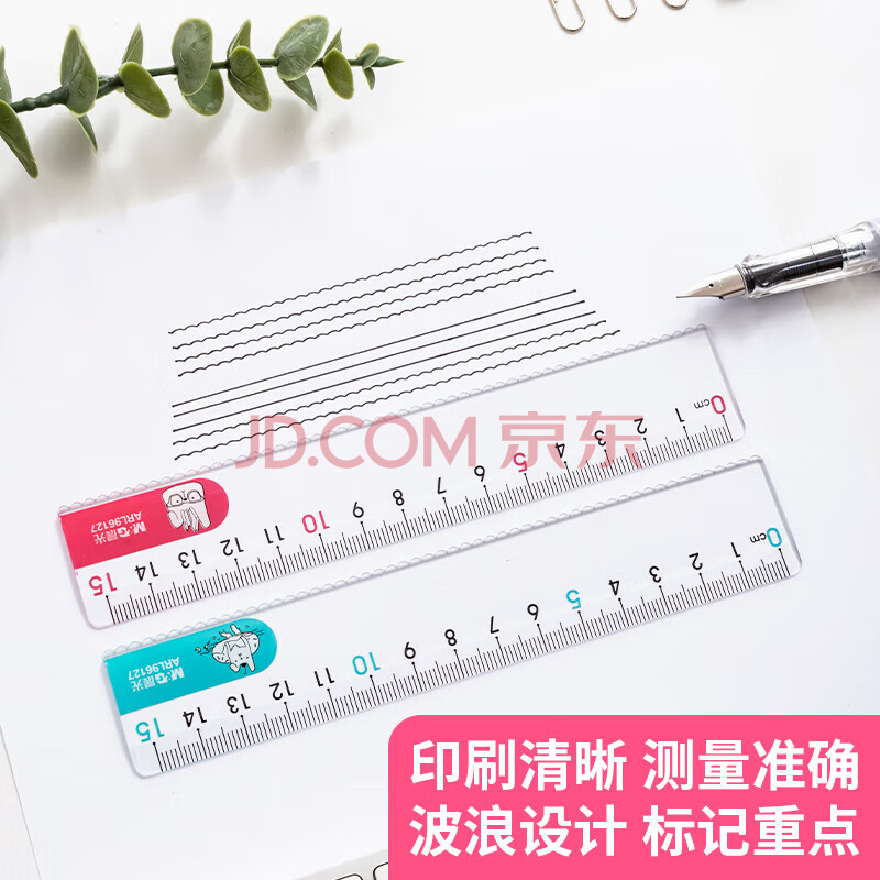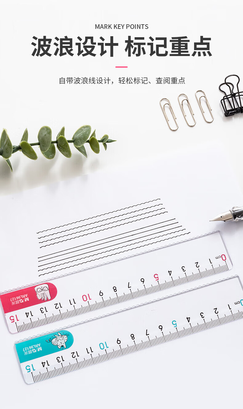 晨光(M&G)文具15cm学生直尺 考试绘图制图波浪边尺子 耷拉兔系列 开学文具 颜色随机单个装ARL96127开学礼物
