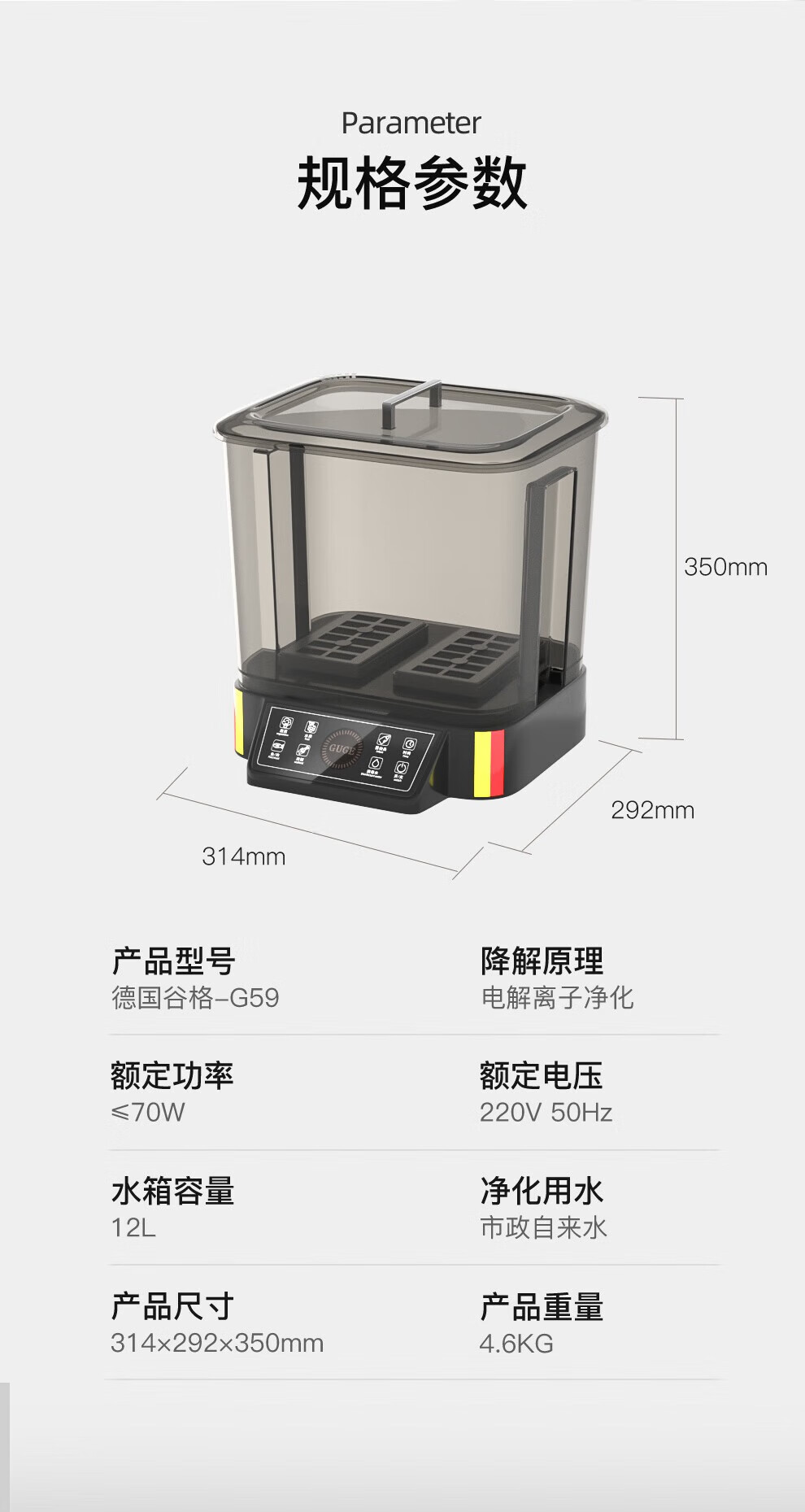 谷格(GUGE)食材净化机家用洗菜机等离子旋转果蔬清洗机 德国谷格G088大容量双桶