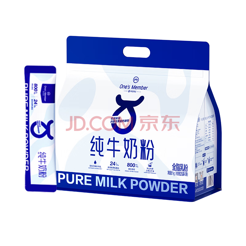 1号会员店 全脂纯牛奶粉1kg (25g*40条)中老年儿童高钙礼品