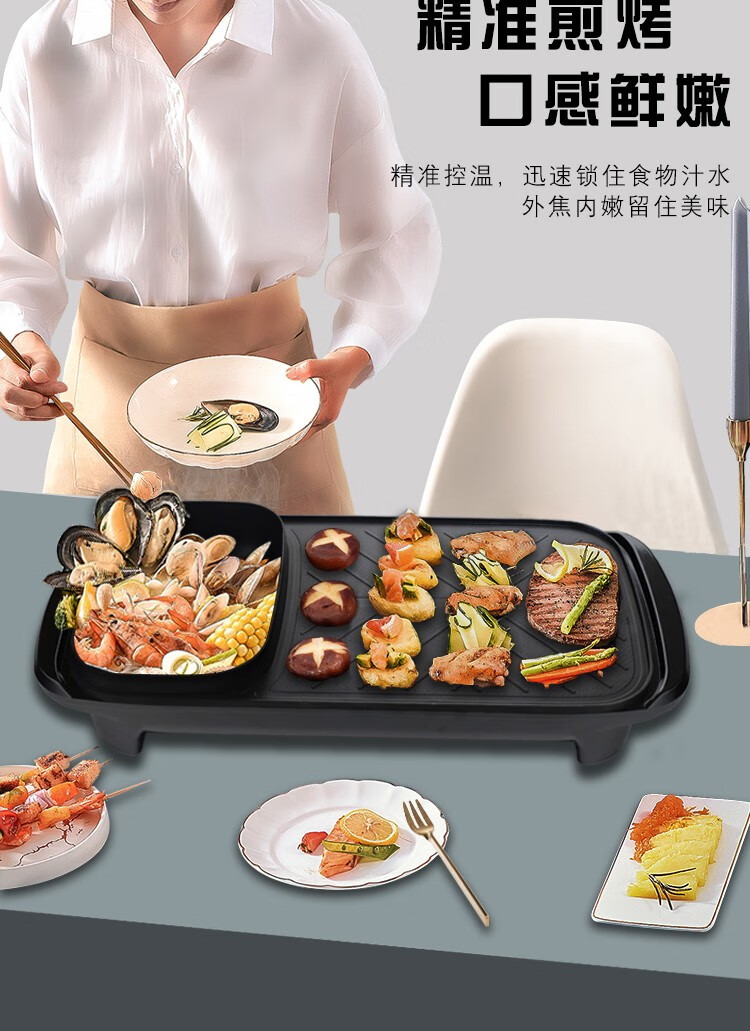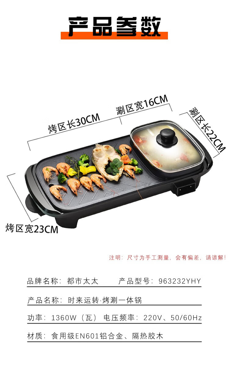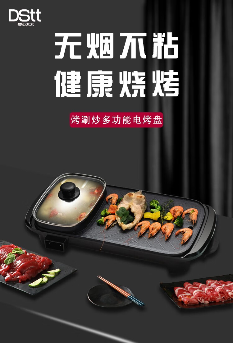 都市太太(DStt)DS974622食来运转烤涮一体机家用小电烤锅涮锅多功能无烟烤肉机韩式家用电烤盘 (单位:台)黑色