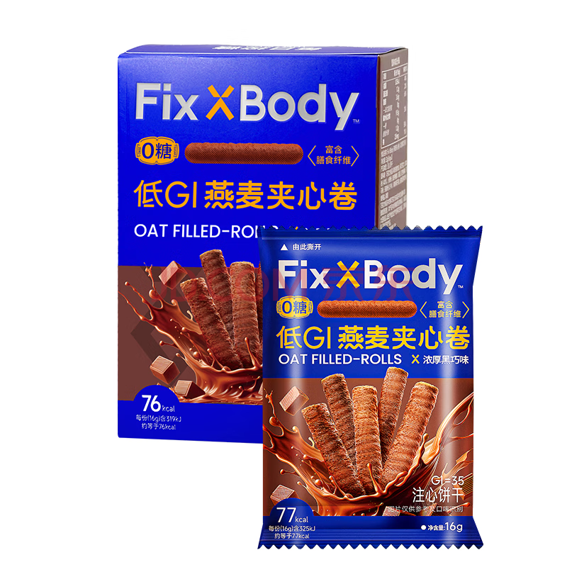 Fix XBody旺旺夹心饼干燕麦卷组合装128g/4盒 饼干糕点休闲零食浓厚黑巧味