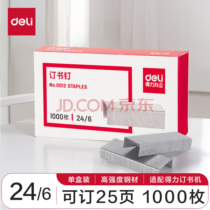 得力 (deli) 高强度24/6订书钉 12#订书针 1000枚/盒 单盒装 可订20页 办公文具用品 0012