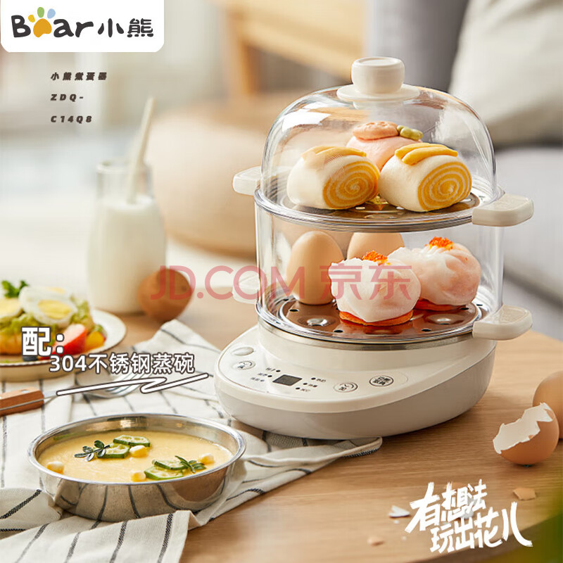 小熊煮蛋器 双层家用多功能蒸蛋器 不锈钢早餐蒸点心蒸锅 可预约定时自动断电蒸锅 ZDQ-C14Q8