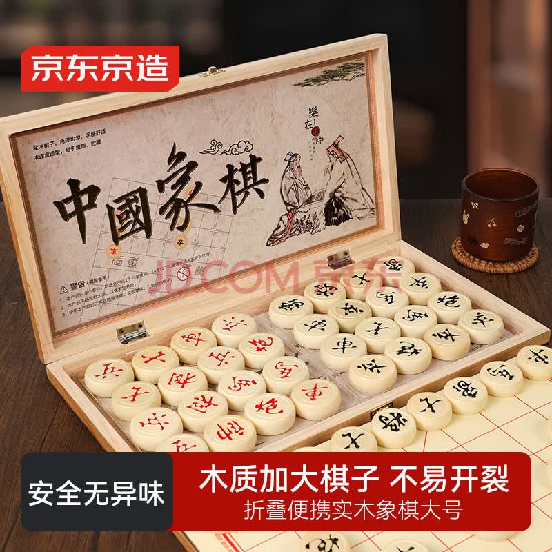 京东京造 实木中国象棋套装 【防水耐磨】折叠棋盘棋子便携学生大号开学季